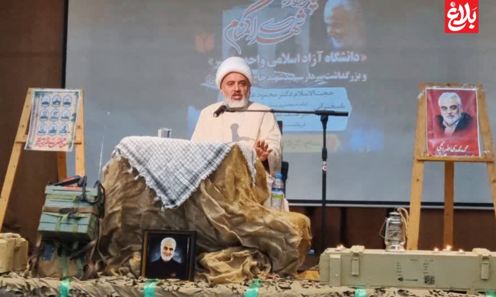 به گزارش خبرنگار گروه فرهنگی «بلاغ» حجتالاسلام محمود علیخانی در مراسم یادواره دو شهید گمنام مدفون در دانشگاه آزاد و گرامیداشت ایام شهادت شهید سلیمانی و حماسه ۹ دی با اشاره به تقارن این آیین با ماه مبارک رجب و مجموعهای از مناسبتهای مهم معنوی و انقلابی اظهار کرد: امروز در مکانی علمی و آموزشی، یاد دو شهید گمنام را گرامی میداریم؛ شهدایی که بینام و نشان، اما با هویتی روشن، ضامن عزت و امنیت این سرزمین شدند. این مراسم همزمان با سالگرد شهادت سردار دلها حاج قاسم سلیمانی و در آستانه ۹ دی روز بصیرت برگزار میشود که هر سه مناسبت، به یک حقیقت مشترک پیوند خوردهاند.